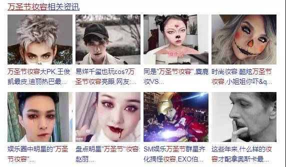 至于妝容怎么畫?大家可以在網上搜“萬圣節妝容”,就會有很多創意造型,隨便模仿一下就能吸睛無數。