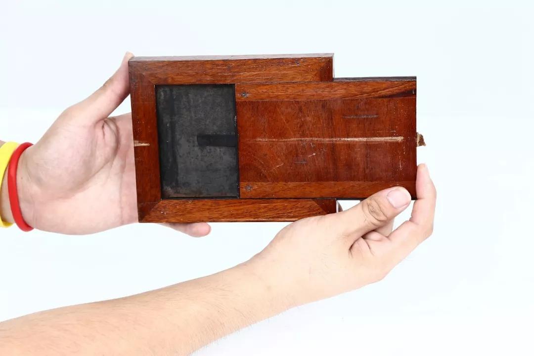 盡管濕版照相機有多種式樣,但在 19 世紀濕版攝影盛行時期,木制滑箱式和木制皮腔式仍是當時最為主要的機種。筆者有幸收藏了兩臺這類照相機,一臺是謝瓦利埃式的尾板式滑箱照相機(可以拍攝濕版),一臺是皮腔式濕版照相機。