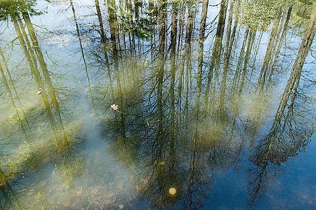 這張構(gòu)圖方法,經(jīng)常被運(yùn)用于倒影攝影中。尋找平靜的水面,以表現(xiàn)倒影為主;同時,又在畫面中保留部分地面景物作為陪襯。