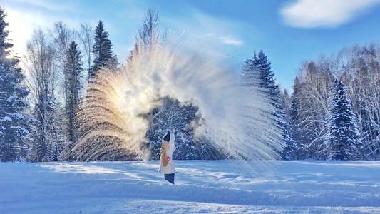 冬季禾木村的積雪很厚,在透白而松軟的雪毯上徒步行走,瞬間感覺自己像一位步履蹣跚的老人,左右搖晃,腳底生花,唯有這樣腳步慢下來,心才會生根發(fā)芽,漫步在禾木,隨處可見一朵一朵大小不一的雪蘑菇,像是給木屋帶上了厚厚的雪帽子,眼前宛若一個童話世界,我們在這個潔白世界里堆雪人、打雪仗、拍美照,在雪地里打滾撒潑嬉笑玩鬧;