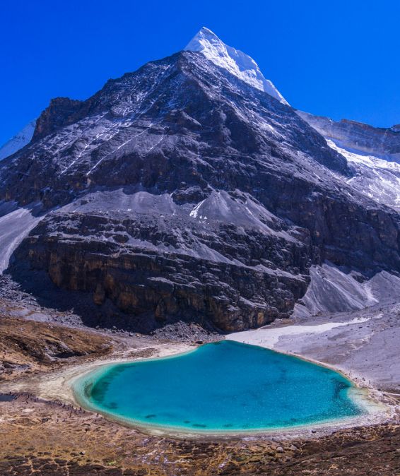 作為稻城亞丁的三大圣湖之首,神山中的綠寶石,牛奶海的中間是碧藍的雪水,周邊是一圈乳白色。