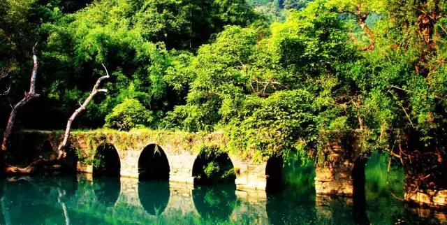 銅鼓橋、小七孔古橋、拉雅瀑布、68級跌水瀑布、野鴨池、水上森林、鴛鴦湖、臥龍潭
