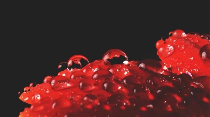 玻璃上我們去放一些食用油,然后呢用微距拍攝,局部裁剪構圖就出來這種效果了,如果說你想在這種泡里面產生出不一樣的圖案,你可以在下面放一個紅包。