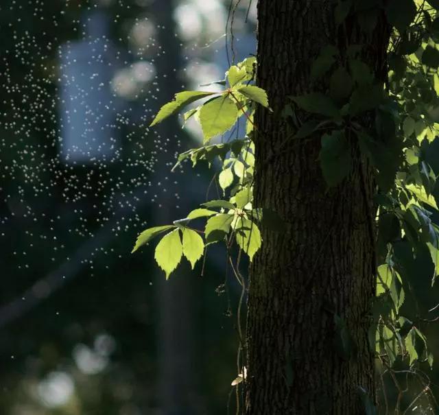 對焦于像是在玩捉迷藏游戲的樹葉,使用逆光光線和長焦鏡頭 拍攝,使嫩綠的樹葉在較暗的背景中表現出晶瑩剔透的效果, 讓人有種忍不住想去觸摸的沖動