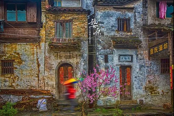 這張照片是在慶源村拍攝的。在這個(gè)古城兩旁是古建筑,中間是有一條小溪的,這個(gè)村落相對(duì)李村,李坑來(lái)說(shuō)我認(rèn)為他更加原生態(tài)。這次婺源自由拍攝,對(duì)這個(gè)村印象最深刻的是因?yàn)閮膳蕴一ㄊ㈤_(kāi),梨花也盛開(kāi),剛好下了雨,如果說(shuō)你讀過(guò)雨巷,此時(shí),走在這條古村,撐著雨傘,真的是走入了畫(huà)境里面了。所以還想去一次去這個(gè)地方,因?yàn)檫€有很多角度,有待慢慢挖掘。