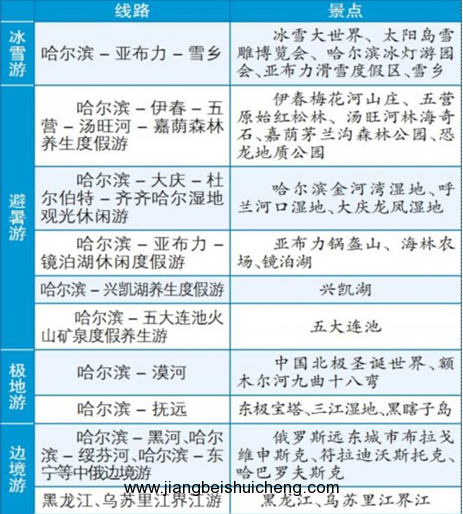在昨天(16日)舉行的“全國百強旅行社龍江行”活動對接會上,省旅游局推出了10條精品旅游線路(見下表),線路以哈爾濱為中心,輻射全省旅游景區,涵蓋四季旅游產品。