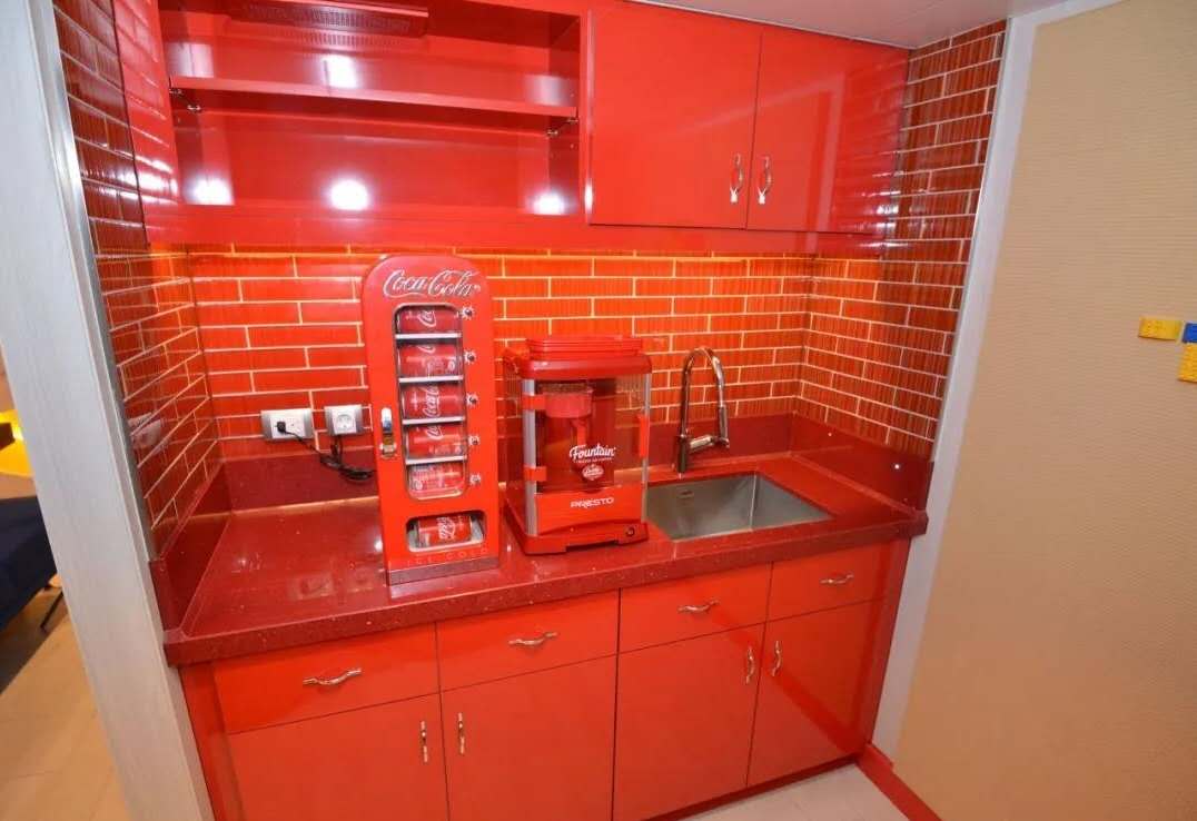 皇家加勒比公司希望通過手機登船系統和面部識別軟件來改善乘客的登機過程。一旦上了船,乘客會發現一些改進,包括增加的14個陽臺艙和14個可以俯瞰中央步行路區域的船艙,以及一個新的內部艙的虛擬陽臺屏幕系統。最引人注目的是皇家加勒比的第一套兩層甲板高、1,346平方英尺的終極家庭套房(The Ultimate Family Suite)。最終的家庭套房是船上最大的套房之一,并以家庭友好的設施自助餐為特色,套房最多可容納八人,包括從孩子們臥室 (upper level) 到樓下的客廳設有室內滑梯 ,地板到天棚的樂高積木墻,桌上冰球, 2 掛蛋式秋千椅,一間電視電影室 (3D movies, 爆米花機, 媒體書庫, 視頻游戲控制臺 )和一間小廚房。陽臺(sized 20 平方米 / 210 平方英尺)上有一個大臺球桌、一個小型攀巖墻和一個按摩浴缸。