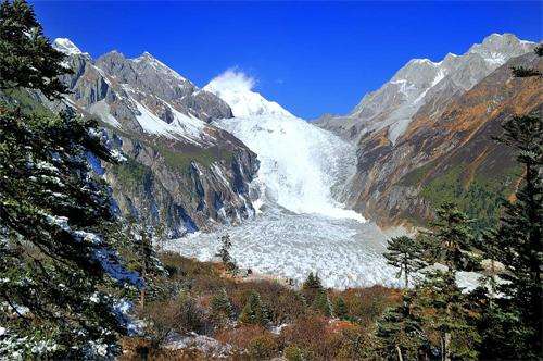 晶瑩的現代冰川從高峻的山谷鋪瀉而下;