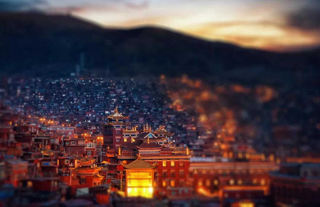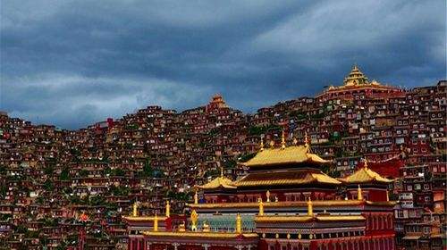 以佛學(xué)院的大經(jīng)堂為中心,密密麻麻搭滿了四面的山坡,