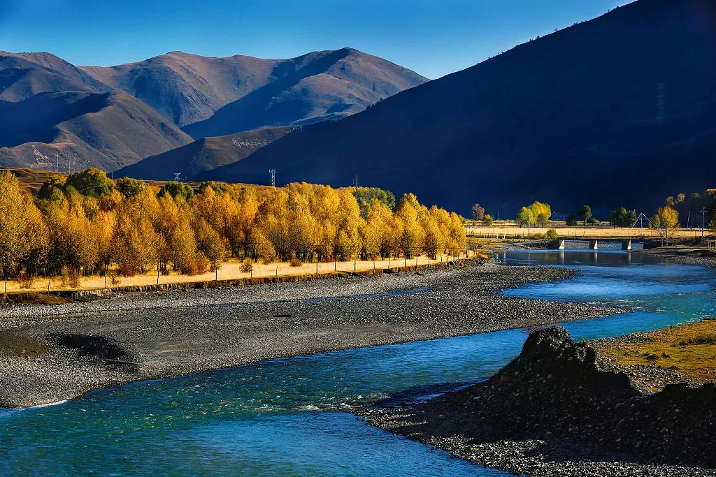 金黃的柏楊,連綿起伏的山巒,