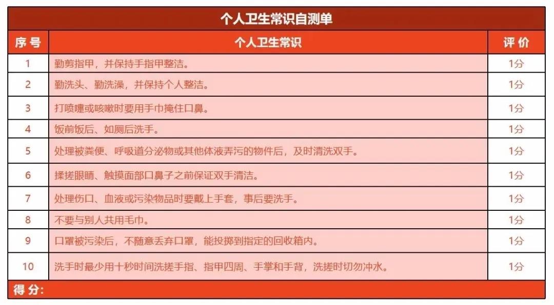 在家里提前與孩子學(xué)習(xí)個(gè)人衛(wèi)生的相關(guān)知識(shí),增強(qiáng)自我保護(hù)意識(shí)。這里,也給大家總結(jié)了一些自我保護(hù)的自測單,可以做到的話+1分。