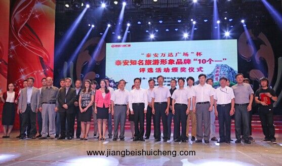 9月12日,“泰安萬達(dá)廣場(chǎng)杯”泰安知名旅游形象品牌“10個(gè)一”評(píng)選活動(dòng)頒獎(jiǎng)儀式在泰安市電視臺(tái)演播大廳舉行。頒獎(jiǎng)典禮上,最具震撼力的旅游宣傳口號(hào)、游客最愛傳唱的旅游歌曲、游客最喜愛的旅游微電影等10個(gè)獎(jiǎng)項(xiàng)全部誕生。