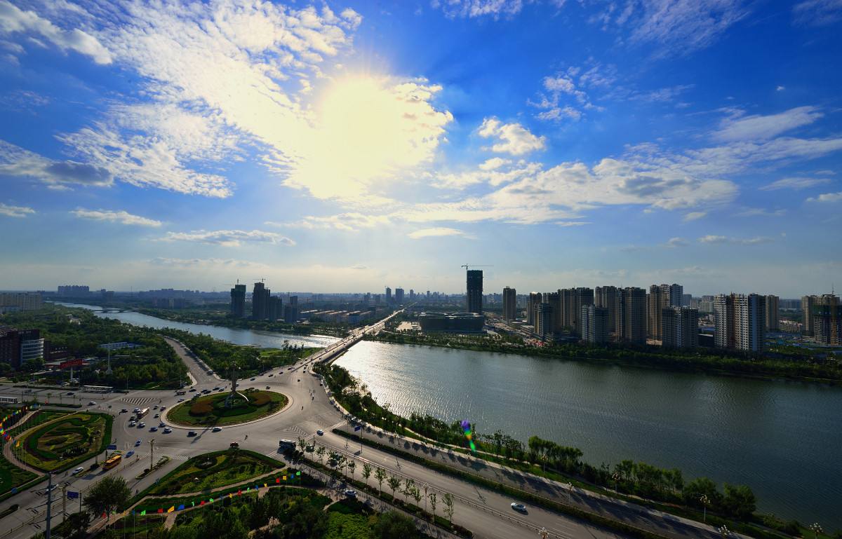 下午6點,迎著晚霞,在東昌湖拍攝日落。