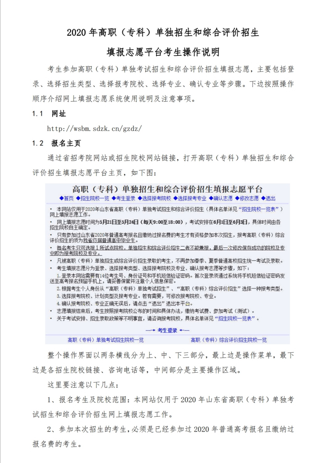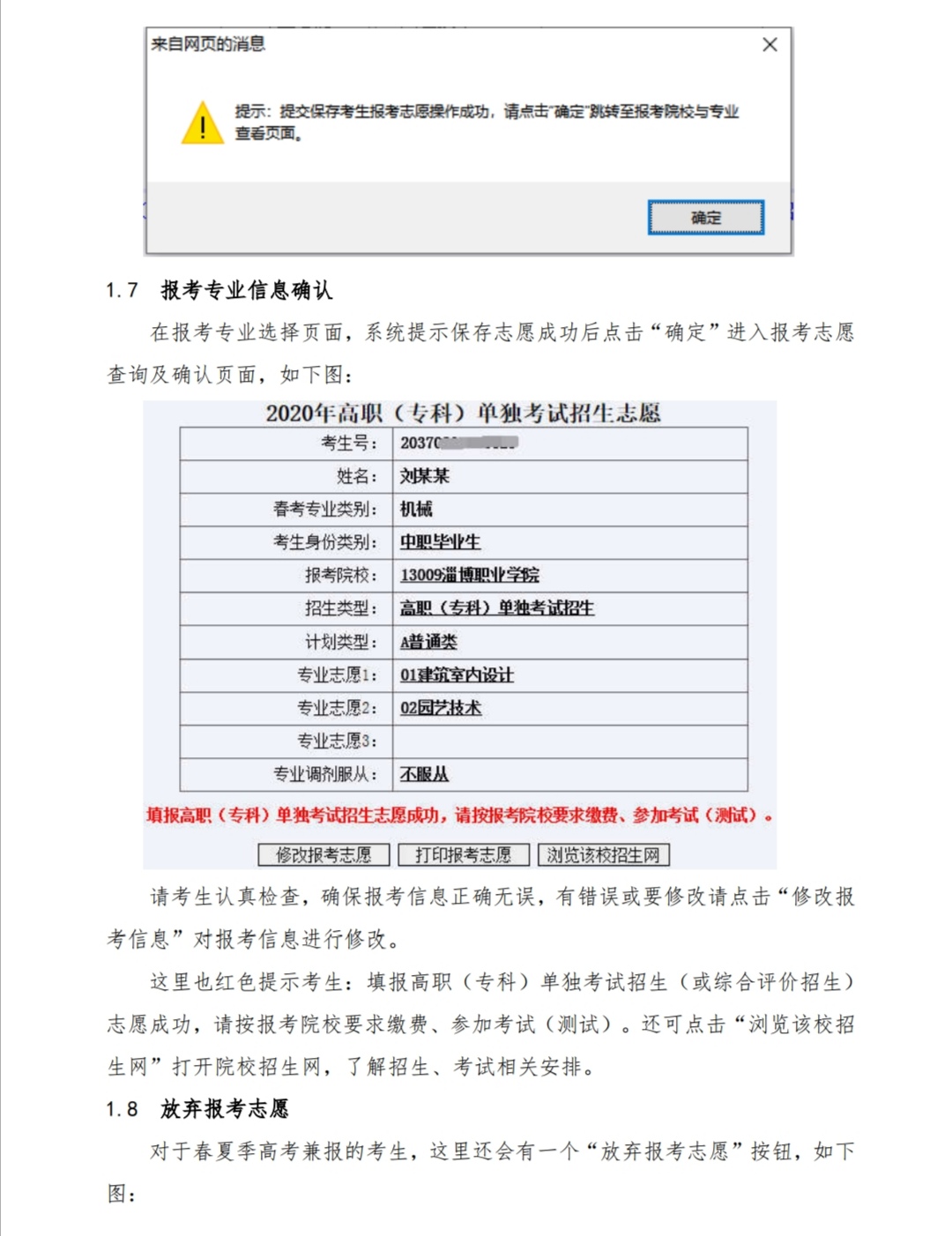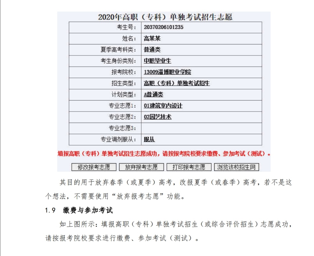 2020 年高職(專科)招生填報志愿平臺考生操作說明