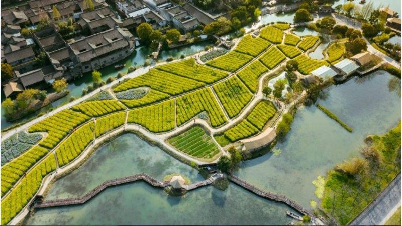 最盡頭的水域即是京杭大運河流經的地方,白蓮寺中的高塔頗為引人注目。