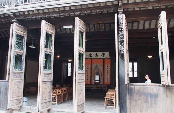 廳上廳:也名朱家廳。朱家是舊時江南一帶最有名的珠寶行肇慶堂銀樓的創始人。肇慶堂的名字就是朱家廳正堂的名字。整棟房子雕梁畫棟異常精致,其中最獨特的地方就是這座宅子有一上一下兩個客廳,所以才會被成為廳上廳。朱家廳中目前還有當年肇慶堂銀樓制作的珠寶首飾展出。