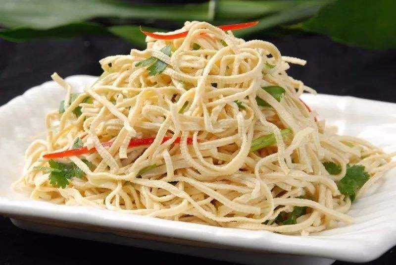 高碑店豆腐絲,采用優質大豆,經過篩選、浸泡、磨漿、煮沸、去渣、凝固、壓片、切絲、鹵煮、捆把10道工序制成風味獨特的五香豆腐絲,是老幼皆宜、家肴游膳之佐餐佳品,有“素食之首”之美譽