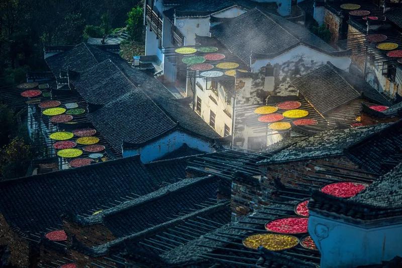 篁嶺,一個隱藏在大山深處奇特的山居村落,因其獨特的曬秋景觀、粉墻黛瓦的徽式古民居將會深深吸引著世界目光。飽經滄桑的徽式民居土磚外墻與曬架上五彩繽紛豐收成果組合,繪就了一幅閑適、安詳、恬靜的古村風情畫,與遠山、近水、粉墻、黛瓦相印成趣,感受天人合一的境界。