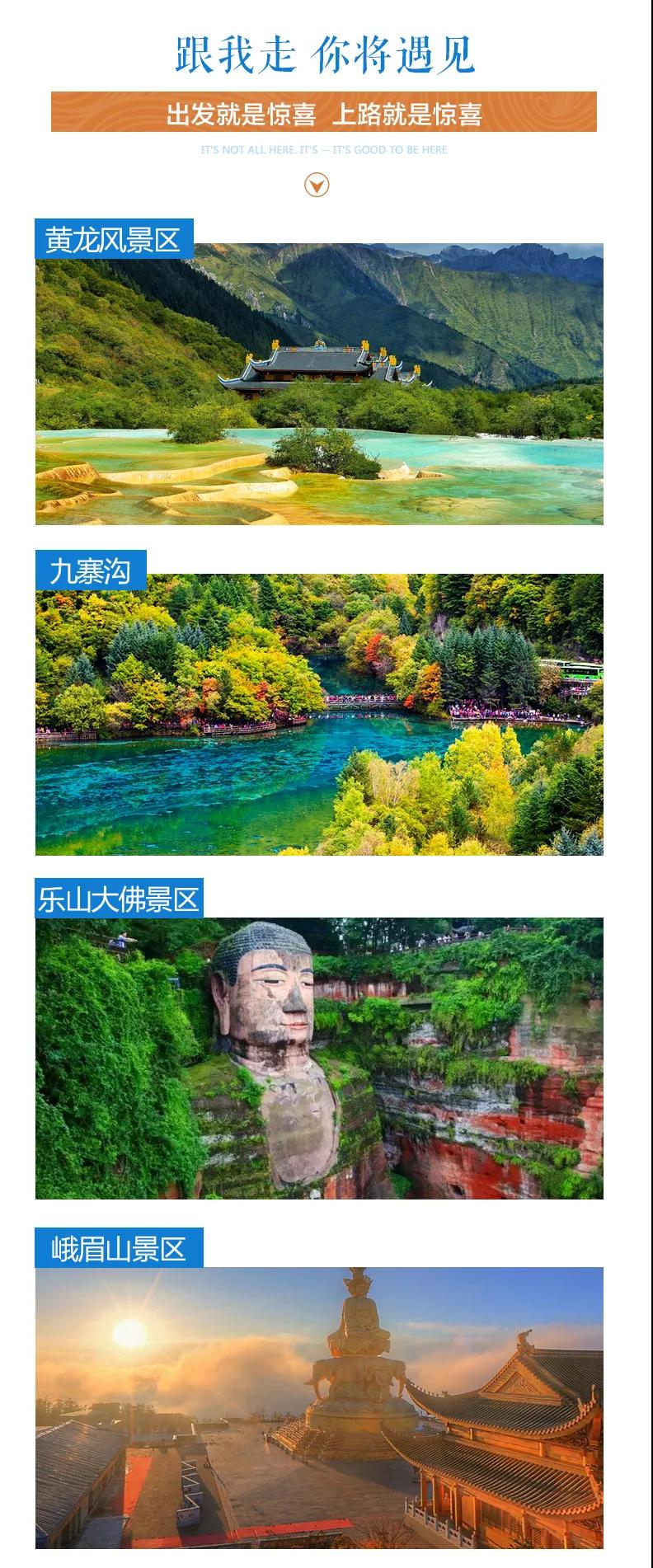 九寨溝門票、黃龍風景區門票、峨眉山首道大門票、樂山大佛門票、熊貓樂園門票、大佛禪院門票;