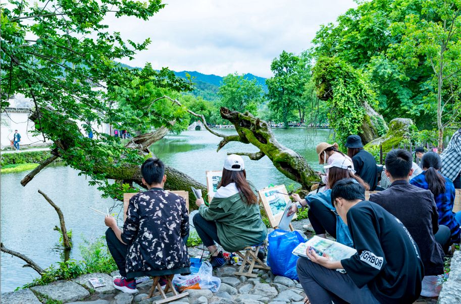 都可以看到來宏村寫生的學生,