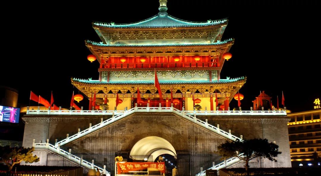 西安鐘樓始建于明洪武十七年,是一座重檐三滴水式四角攢尖頂?shù)拈w樓式建筑,面積1377.64平方米,建在用青磚、白灰砌成的方形基座上。西安鼓樓始建于明洪武十三年建于高大的長(zhǎng)方形臺(tái)基之上,臺(tái)基下辟有高和寬均為6米的南北向券洞。