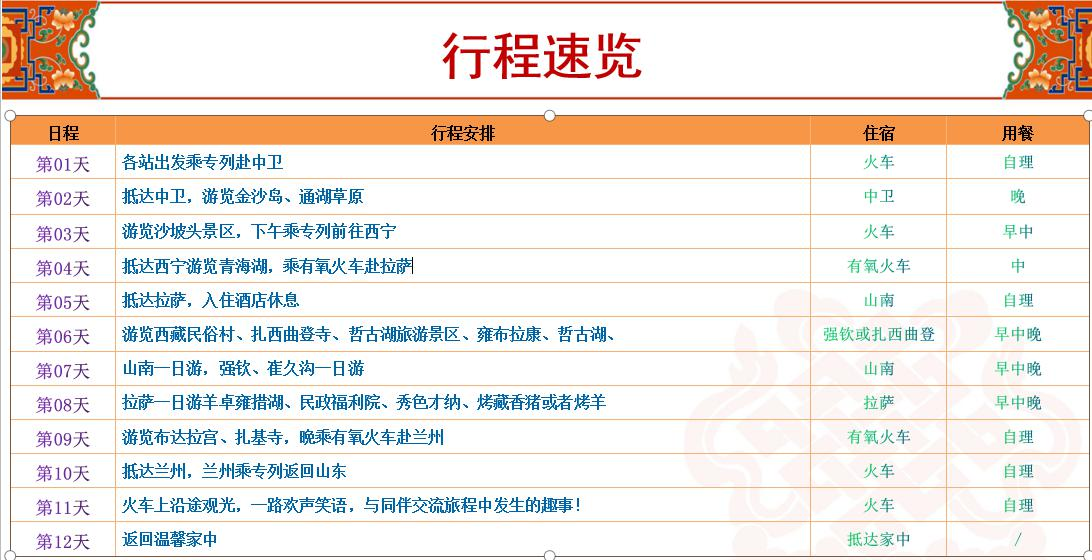 因專列涉及各個鐵路局,最終出發時間、行程、價格以鐵路總公司最終調令為準。若專列達不到出行人數,我社有權改為正班!