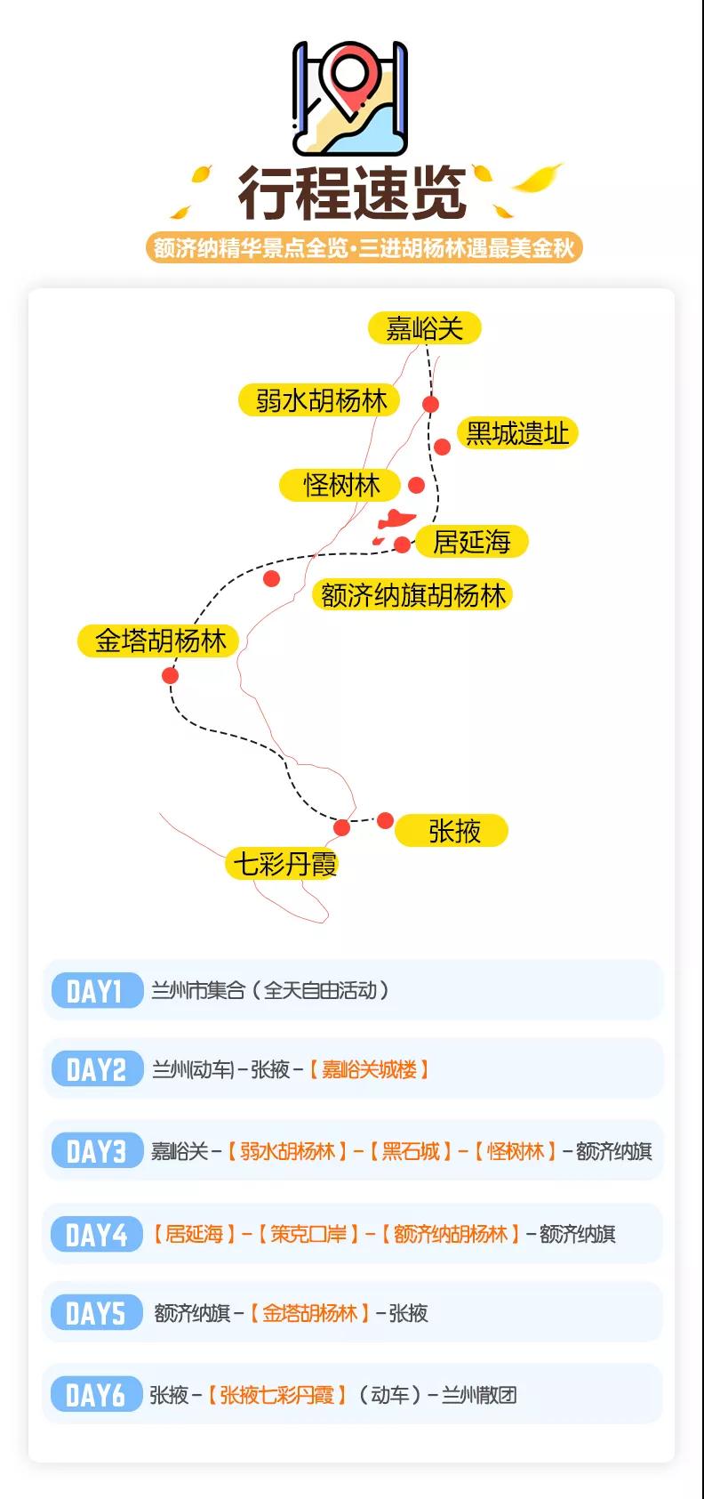 門票:含額濟(jì)納胡楊林、黑城-怪樹林-弱水胡楊林門票(含景區(qū)交通車)、居延海(含景區(qū)交通車)、張掖七彩丹霞地貌(含景區(qū)交通車)、嘉峪關(guān)城樓門票、策克口岸門票。