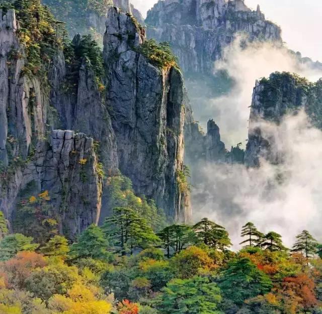 黃山的秋季,別有種種勝景,明代大旅行家徐霞客曾贊美黃山秋色“楓林相間,五色紛披,燦若圖繡”。