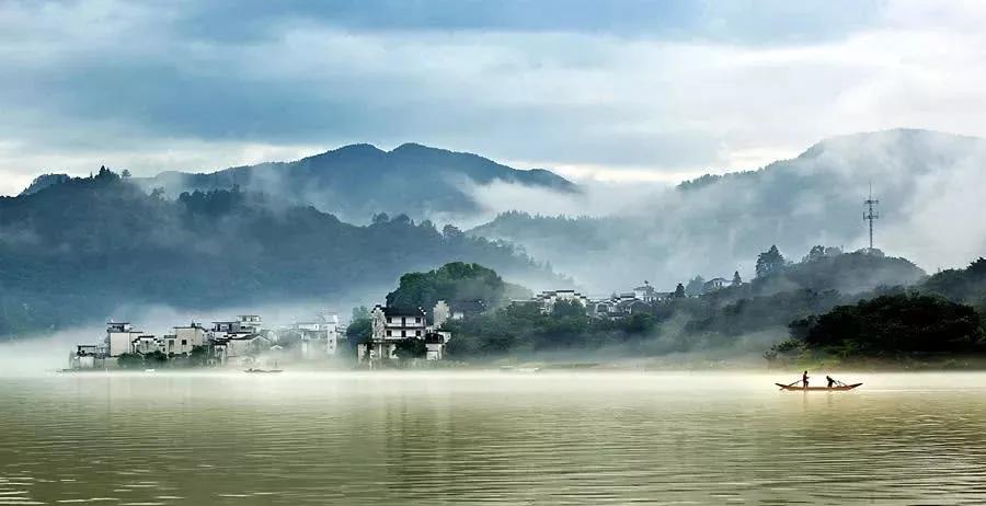 月亮灣依山伴水,水面平靜如鏡。一兩葉小舟,遠遠近近高低錯落的徽派民居互相輝映,形成了一幅絕美的畫面。
