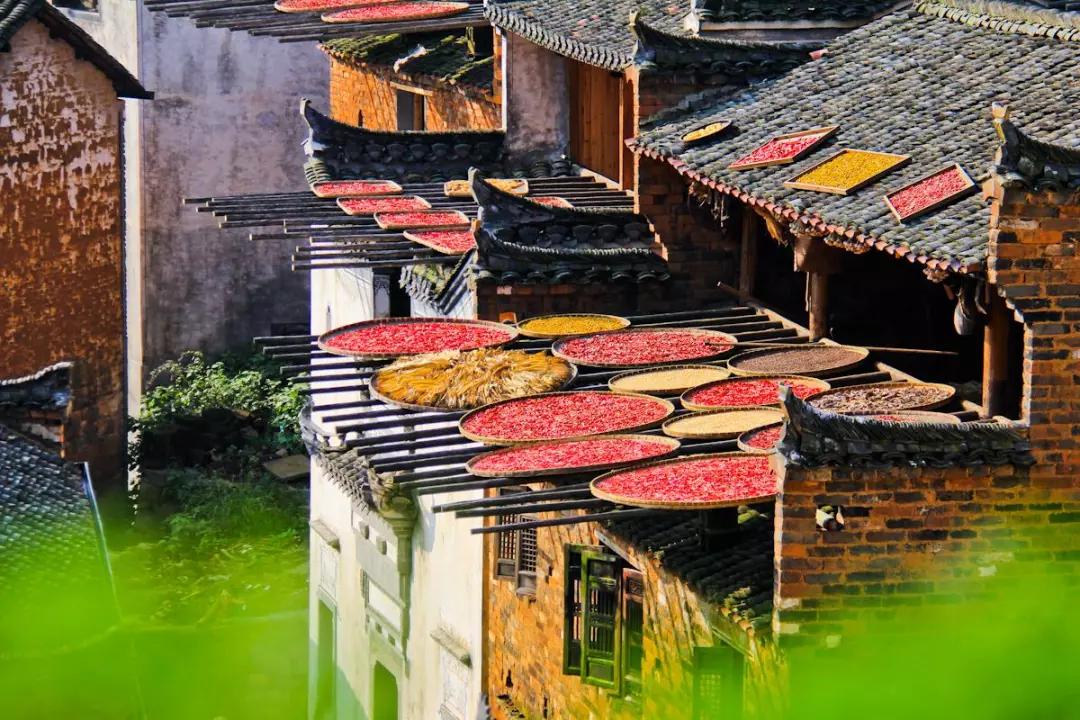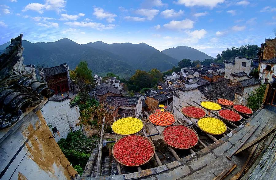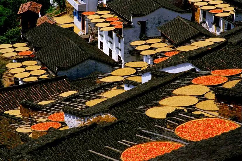 篁嶺的秋天不是北方漫天遍野的金黃,而是晾曬在屋頂的人文秋色。