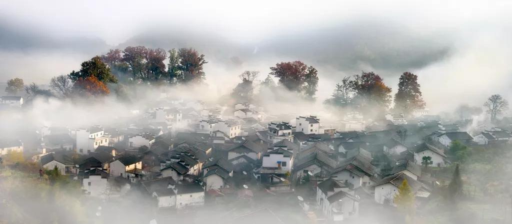 晨霧炊煙中的古村落,在光影流轉、云煙輕繞中美得如夢如幻,如詩如畫