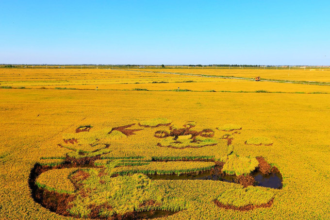 你可能見(jiàn)過(guò)各種繪畫(huà)形式,但你一定沒(méi)見(jiàn)過(guò)稻為筆,田為畫(huà)布,風(fēng)奏樂(lè),蒼穹下的奇特畫(huà)卷。一片金燦燦的稻田,混合著各種作物的色彩,一幅幅造型各異的的美麗畫(huà)卷,在這個(gè)收獲的季節(jié)格外的格外的生機(jī)勃勃。