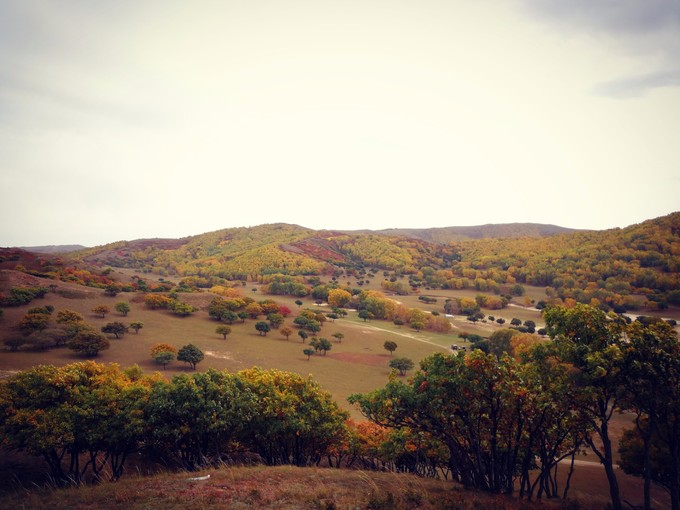 蛤蟆壩位于河北與內蒙古交界的克旗烏蘭布統境內,是一塊高起的平緩坡地,三邊是“溝”或低地。 --這里地貌獨特,秋天景色絢麗多彩,漫山遍野的紅葉,流金溢丹,簇簇紅葉中,明黃的白樺葉融合在一起,匯成一幅幅渾然天成的圖畫。 --山坡下,溝膛里,依山就勢,散落著幾十間茅屋草舍和新蓋的紅磚瓦房。雞鳴犬吠,炊煙裊裊,很有一種古樸原始的田園風味。 --山頂是一片白樺樹,山腰是一塊塊不規則的梯田,山麓是三三兩兩姿態優美的老榆樹,樹木間隙是木柵圍成的或圓形或矩形的羊圈、牛欄。 --在攝影人眼中,這是一個百拍不厭、常拍常新的攝影創作“寶地”。