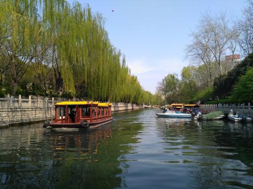濟(jì)南老城的泉水分布最為密集,十大泉群中,僅有老城就占有4個(gè),基本上是現(xiàn)今游船環(huán)城一圈的區(qū)域:從黑虎泉出發(fā),經(jīng)泉城廣場—西門—五龍?zhí)丁竺骱珗@北側(cè)—老東門—青龍橋,密布著大大小小100多處天然甘泉,匯流成的護(hù)城河流淌到大明湖,與周圍的千佛山、鵲山、華山等構(gòu)成了獨(dú)特的風(fēng)光,也成為少有的集“山、泉、湖、河、城”于一體的城市,自古就有“家家泉水,戶戶垂柳”、“四面荷花三面柳,一城山色半城湖”的美譽(yù)。