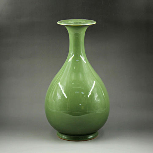 明代龍泉窯豆青和深綠釉色的瓷器,胎壁厚重,器底粗糙,是現代仿制較容易掌握的,這類產品需仔細辨別。作偽器物一個重要工序,就是對器物釉表面進行去光處理,主要采用強酸溶液腐蝕、土埋及一些工業技術上的打磨。近些年來,專家學者對經過作舊處理的器表損傷,在高倍顯微鏡下表現出的不同顯像,作了歸納和總結,提高了對古陶瓷辨偽的科學水平。