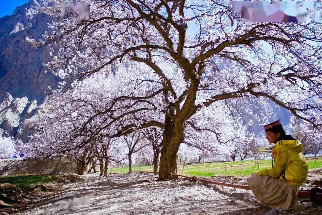 陣陣輕風吹過,粉白的花瓣隨風飄揚,開滿杏花的村落,就像是一場色彩的盛宴,伴著圣潔的雪山和蒼涼的峽谷,美得令人窒息。