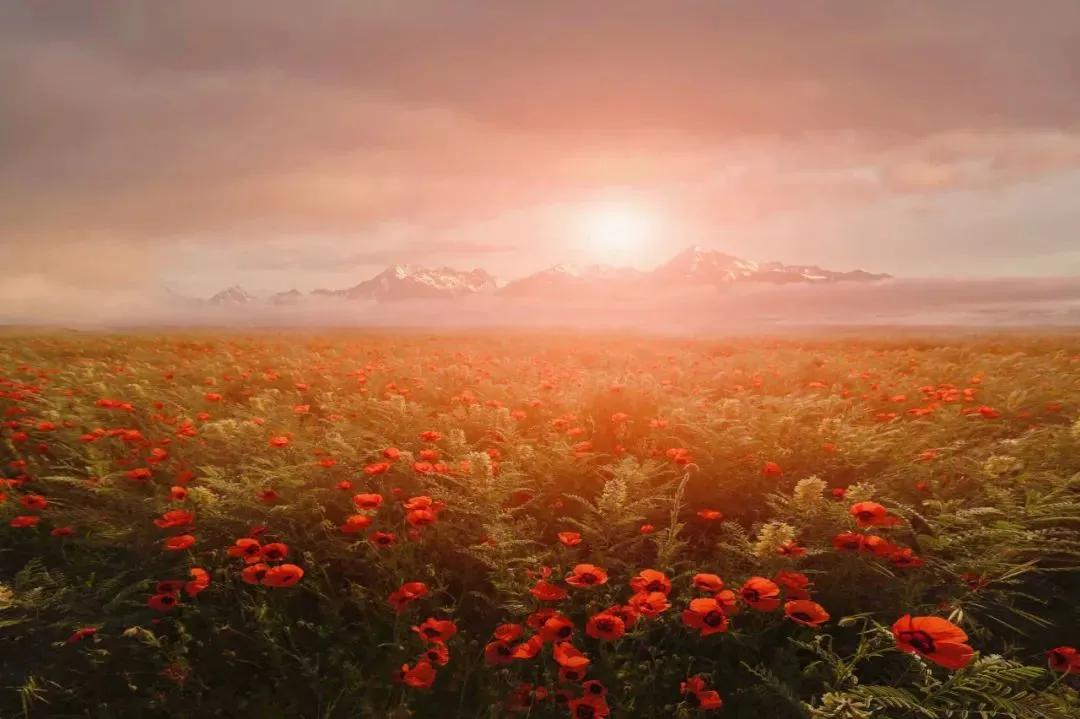 每到五月,伊犁河谷的紅花就進入了盛放的季節(jié),如同緋紅的煙霞,鋪滿了山地草原,隨風輕舞,那淡淡的清香讓人如癡如醉。