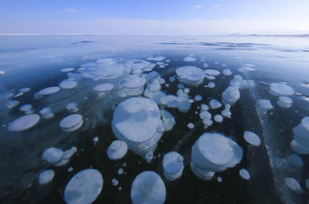 當湖面被冰封后,踩在厚厚的冰面上,還能偶遇冰氣泡、冰裂等奇景。