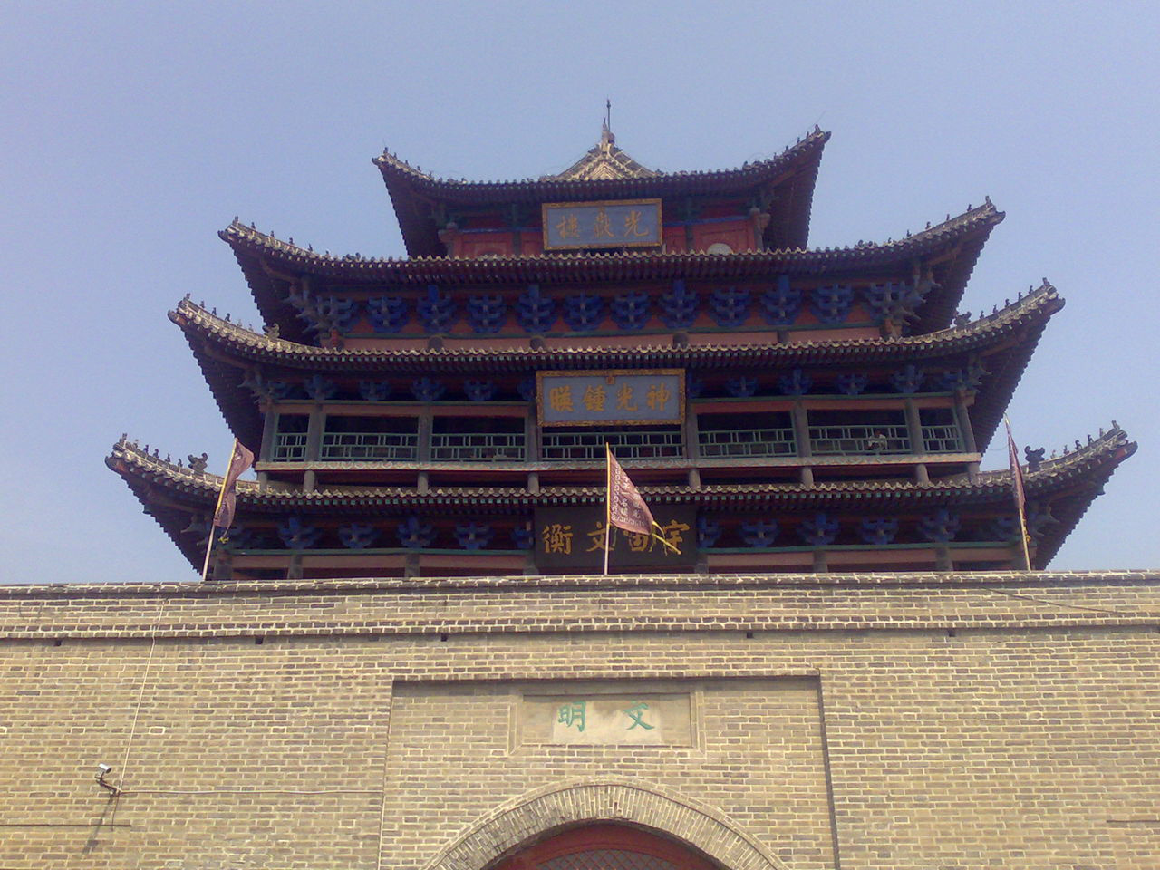 明朝建立初期,元朝剛滅亡不久,北方的形勢(shì)很不穩(wěn)定,東昌守御指揮僉事陳鏞,為防御蒙古貴族統(tǒng)治集團(tuán)復(fù)辟的軍事需要,從洪武二年(公元1369年)到洪武五年(公元1372年)將宋朝熙寧三年(公元1070年)所筑的土城改建為磚城。為了“嚴(yán)更漏,窺敵望遠(yuǎn)”,報(bào)時(shí)報(bào)警,又利用修城剩余木料于洪武五年(公元1372年)起,至洪武七年(公元1374年),共用了三年的時(shí)間,修建了這座高達(dá)百尺的更鼓樓。