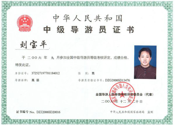 2006年公司董事長(zhǎng)劉寶平獲得中華人民共和國(guó)國(guó)家旅游局授予的“全國(guó)優(yōu)秀導(dǎo)游員”稱號(hào),并受到吳儀副總理的親切接見(jiàn)。全國(guó)優(yōu)秀導(dǎo)游員帶隊(duì)管理,相信我們能為您提供最優(yōu)秀的旅游服務(wù);