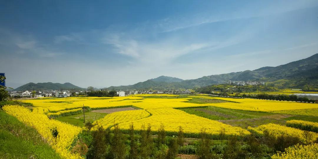 整個(gè)徽州便上演巨型的金黃色油菜花團(tuán)體操...