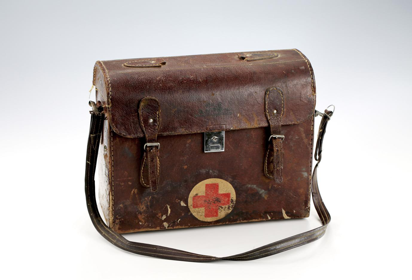 這只藥箱年代為二十世紀(jì)八十年代初,材質(zhì)為皮革。長33厘米,寬15厘米,高26厘米,是國家一級(jí)文物。