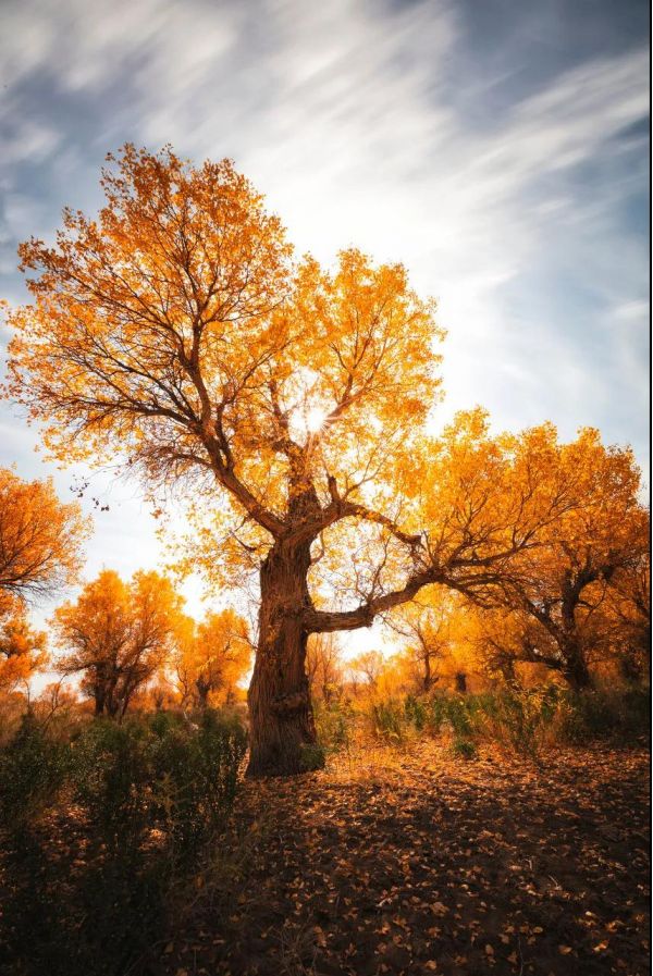 大漠駝鈴從古時傳來,在土地上發出厚重的回聲胡楊林靜默地散發力量。 深秋,就應該去看最蒼茫、最絢爛的顏色看最美艷、最古老的胡楊。