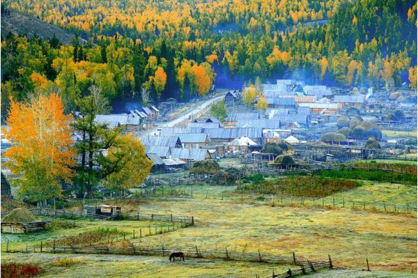 圖瓦人為主,位于阿爾泰山山脈的山谷平地上,與哈薩克斯坦的大山遙遙相望,阿爾泰山上密密麻麻的金黃金黃的松樹林一直延伸到白哈巴村里,村民住的木屋和圈養(yǎng)牲畜的柵欄錯(cuò)落有致地散布在松林和樺林之中,安寧、祥和 。奇臺(tái)江布拉克國(guó)家森林公園