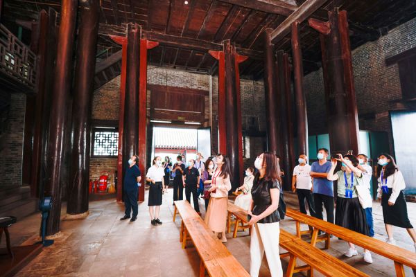 如果說聊城是一部厚重的書,山陜會館就是其中華美的篇章。暮鼓晨鐘、雕梁畫棟,這里見證了大運河“帆檣如林”的盛景,也蘊藏著歲月沉淀的斑駁風霜。在山陜會館,明清時期聊城的商業繁榮景象,讓與會嘉賓大開眼界。