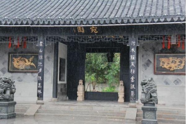 這也應了廊柱上那副道盡宛園山水的對聯:“河水經天積金銀氣,靈山鎮地多珠玉林。”