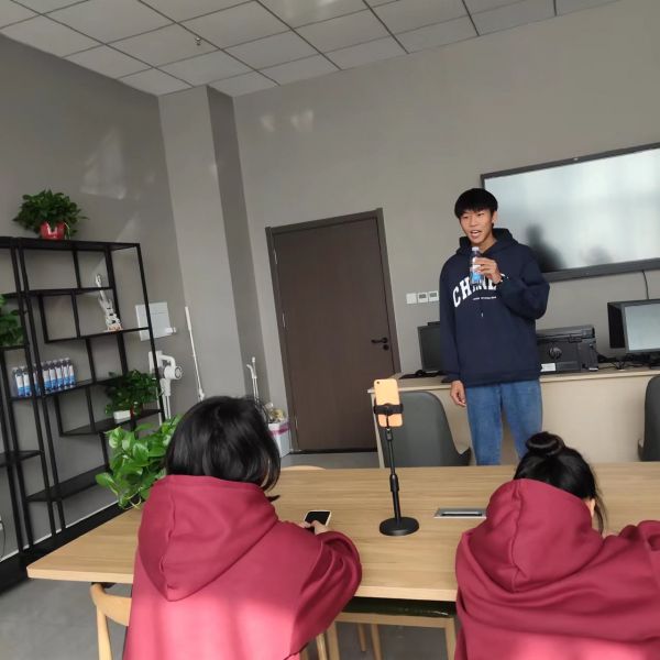 早上8:00,我們省導賽小組開始了忙碌而充實的一天。裝修師傅來安裝通風口,我們讓師傅把頭上的膠帶拿了下來,裝修完后我們開始打掃衛生,董家興走廊拖地;楊倚晴洗茶具并把桌子上掉下來的灰塵擦到地上;苗苗拿洗地機把整個地都拖干凈,李鑫諾也興致勃勃的參與進來。  經過一個小時的自習,我們開始錄制視頻, 第一位錄像的是我們的核心成員李鑫諾,導游詞講解用時4分32秒。第二位錄像的是苗苗,她笑容可掬,自然的錄完了視頻,用時4分03秒。第三位是楊倚晴,用時4分19秒;第四位是董家興,用時4分07秒。但是因為不流暢我和董家興又重錄了一遍。