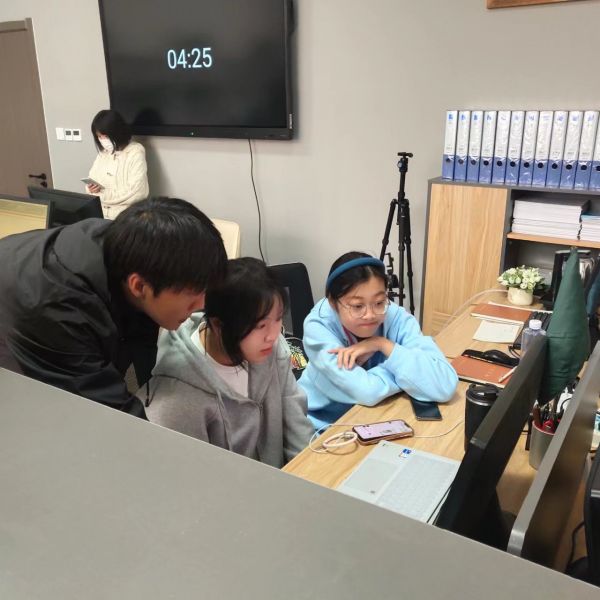 繼續經過一系列整改,李鑫諾進行第三遍演講,一遍比一遍更加完美,總耗時四分零二秒。第四遍演講,總耗時三分四十七秒;第五遍演講,總耗時三分四十二秒。下午做完核酸,14:30我們到達實訓室。大二學生進行期中考試,各小組進行輔助工作,李鑫諾負責主持工作,楊倚晴負責拍照記錄,苗苗和董家興還有唐靜雯負責對大賽表格進行規整的打印工作。