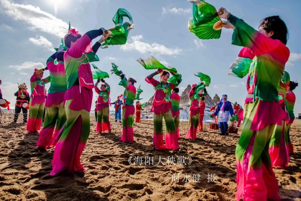海陽大秧歌是山東省三大秧歌之一,是民間社火中的舞蹈部分,流行于山東半島南翼、黃海之濱的海陽市一帶。海陽大秧歌是一種集歌、舞、戲于一體的民間藝術(shù)形式,它遍布海陽的十余處鄉(xiāng)鎮(zhèn),并輻射至周邊地區(qū)。海陽大秧歌素以粗獷奔放、感情充沛、風趣幽默的表演風格著稱于世。在表演形式上,分大場子和小場子兩種,大場子是群舞,鑼鼓鏗鏘、萬馬奔騰,宛若大河滔滔。小場子多是雙人舞、多人舞,恰似小橋流水,一波三折,美不勝收。海陽大秧歌獨具的優(yōu)秀的民間藝術(shù)特色和濃郁的生活氣息,吸引了大批藝術(shù)家、學者及國內(nèi)外游客前來學習、觀賞。