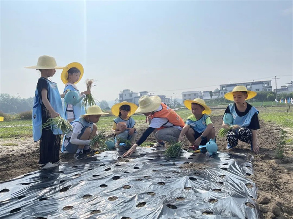 “今天我第一次種了小蔥,還參觀了香蔥博物館,雖然天氣很熱,栽小蔥很辛苦,汗水把衣服都打濕了,但我覺得很有趣,跟小朋友在一起玩也很開心,同時我也學到了很多知識。”學生冷梓墨說。